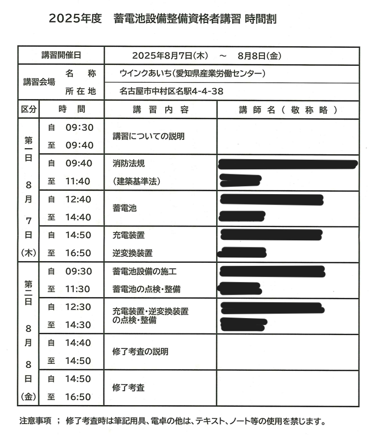 仕事にも慣れてきたし「蓄電池設備整備資格者」を取りに行くことに…。