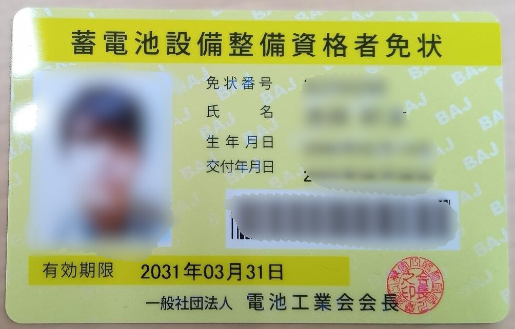 今回は、私が入社してから取得した「蓄電池設備整備資格者」について、