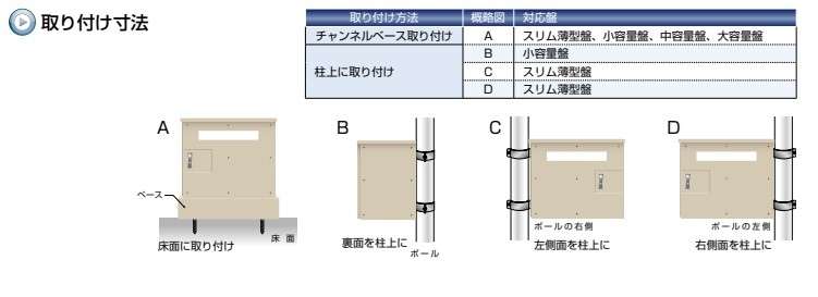 設置としてはチャンネルベースでの取り付け、柱上に金具を用いた取り付けも可能です。