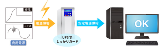 UPSは、あらゆる電源トラブルからコンピュータや周辺機器を守る装置です。