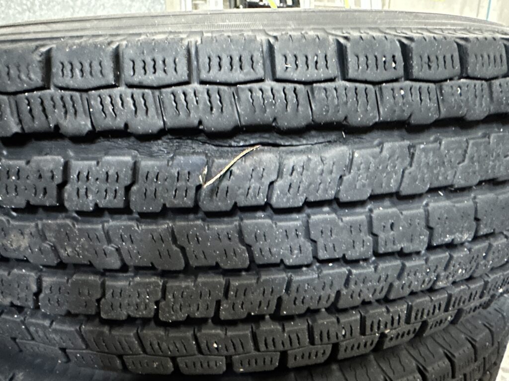 タイヤに亀裂が入り内部よりワイヤーが露出している状態②