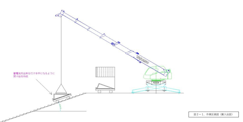今回はインクラインを利用しての液式蓄電池の搬入・搬出であったため、