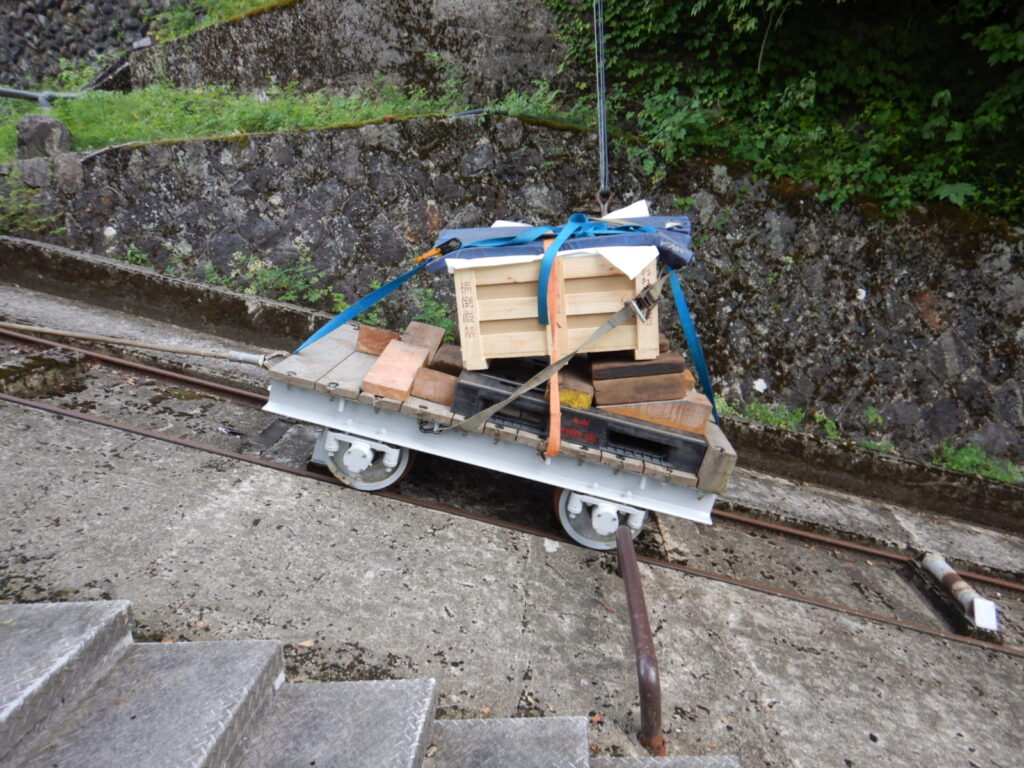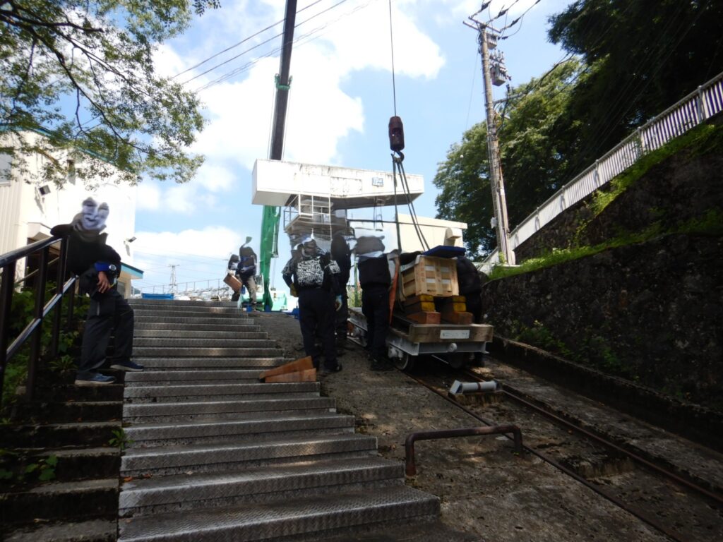 今回工事の肝は何といっても、インクラインでの搬入、搬出に尽きます。