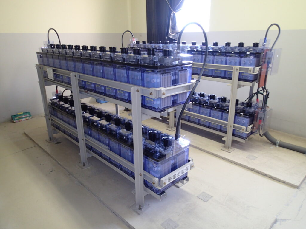 今回の工事内容はベント式据置鉛蓄電池CS-500E 52セルの取替です。