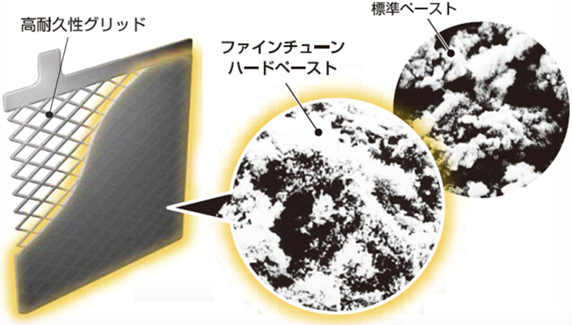 ファインチューンハードペーストによって活物質の利用率を向上させた高容量のバッテリーになりました。